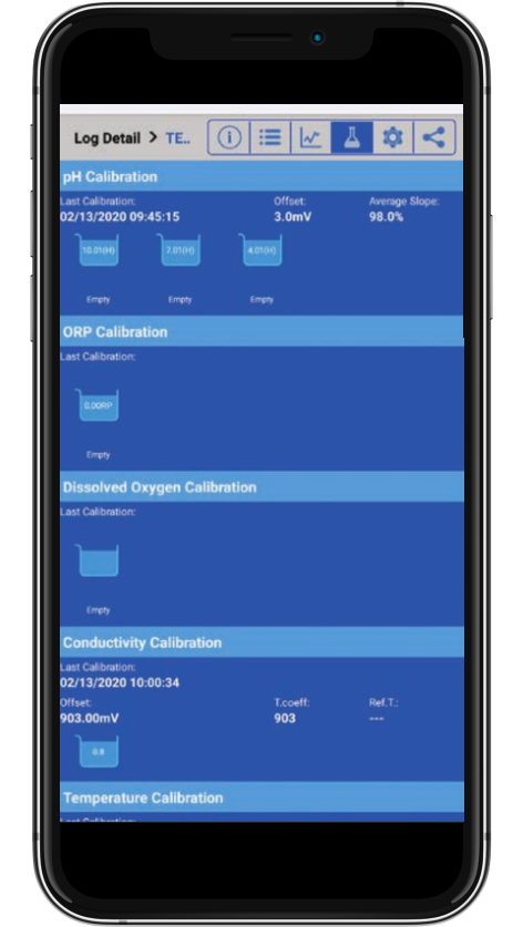 Pour une meilleure traçabilité, les informations d'étalonnage sont enregistrées avec un horodatage et stockées avec les données enregistrées.